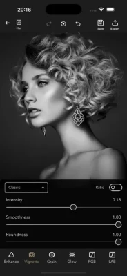 • Advanced Controls: Fine-tune every detail with curves, vignettes (Classic & Natural), overlays, and custom film grain for both photos and videos.