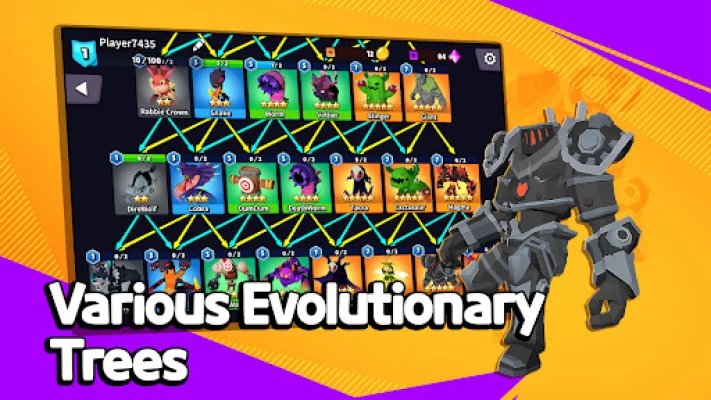 - Mở khóa các quái vật khác nhau dọc theo cây tiến hóa và nâng cấp chúng