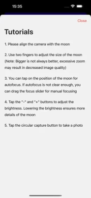 2. Use two fingers to adjust the size of the moon (Note: Bigger is not always better, excessive zoom may result in decreased image quality)