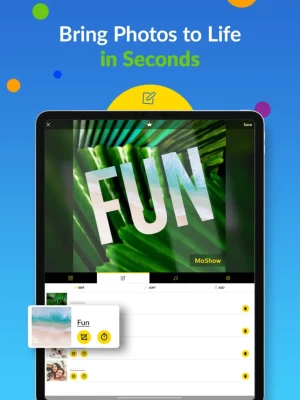 MoShow lets you create video with photos from your phone. Transform static pictures into photo slideshow videos that stand out from the crowd and display your favorite pictures and illustrations.