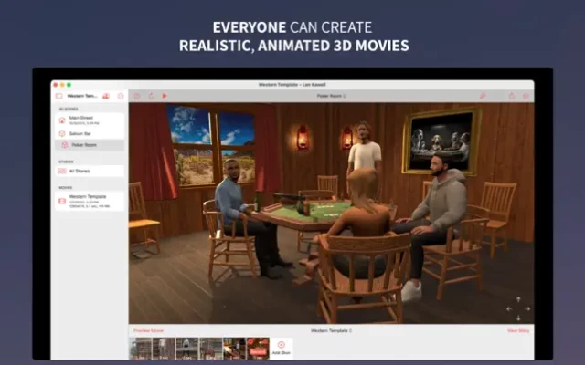 Movie Maker 3D makes it simple for everyone to create fun, realistic, animated 3D movies and videos with customizable templates, easily animated 3D models, your own USDZ and GLB 3D models, built-in and custom avatars and more.