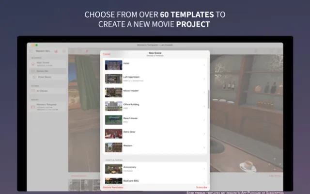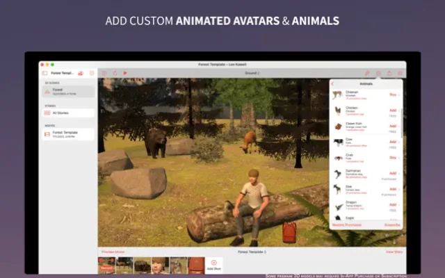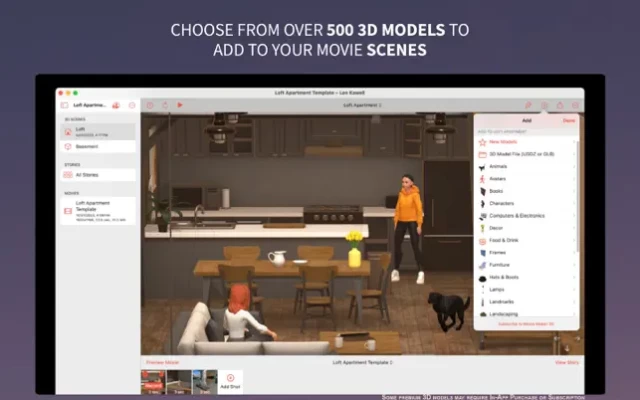 Full featured on all platforms - iPhone, iPad and Mac. Movie Maker 3D is a free app and includes 22 free scene templates and 359 free 3D models for you to try. Upgrade to Movie Maker 3D Plus to get unlimited use of ALL 69 scene templates and ALL 650 3D models.