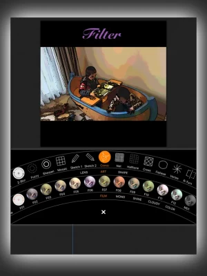 - Up to 80 filter effects (sketch, comics, fisheye, magnifiers, glass, background blur, rotation blur, vortex, various color filter and so on