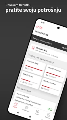 Uz mts Biznis možete: • Pratiti potrošnju u realnom vremenu, bilo kad i bilo gde. • Pregledati aktivne tarifne dodatke i dodatne usluge. • Aktivirati roming, internet ili međunarodne dodatke brzo i lako. • Preuzeti listing poziva za poslednjih 12 meseci. • Upravljati brojevima zaposlenih (postavljanje limita, aktivacija i pregled dodatnih servisa).