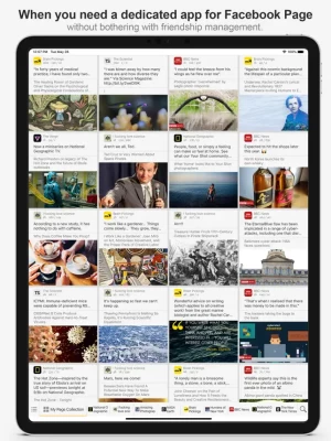 Do you ever want a dedicated app for Facebook page, not bothering with friendship management? This app is a definite answer. Featured with multi tab browsing, grid listing and custom grouping of Pages, this app will give you most powerful experience for Facebook Pages.