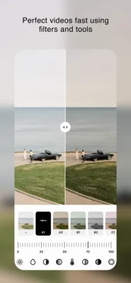- Auto beat sync: the app automatically matches your clips to the music and analyzes beat points to add video effects;