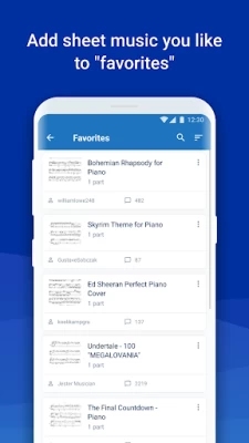 • Access over 1.7 million pieces of FREE sheet music: piano notes, guitar tabs, and scores for most instruments.