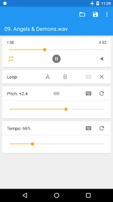 Music Speed Changer allows you to change the speed of audio files on your device in real time without affecting the pitch (time stretch), or change the pitch without changing the speed (pitch shift). Alternatively, both speed and pitch may be adjusted together. The app is a music looper as well - you can slow down song speed and loop sections of the music for easy practice.