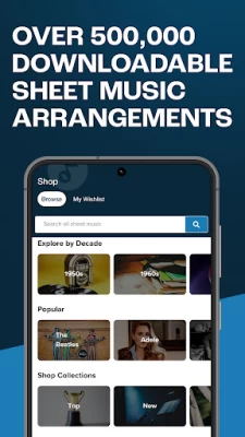 Take your sheet music anywhere with easy access to all your music, including scores, piano arrangements, and guitar tab purchases. Effortlessly scan the sheet music you already own, bringing your entire library right to your fingertips. The Musicnotes Sheet Music app offers a comprehensive selection of music for every skill level across a wide array of instruments including piano, guitar, voice, flute, saxophone, trumpet, violin, cello, and more. Whether you're interested in classical piano pieces, jazz or rock-n-roll guitar riffs, you'll find sheet music for every era and style. Additionally, our platform caters to both solo performers and groups, providing arrangements that suit any ensemble size, from individual musicians to choirs and bands