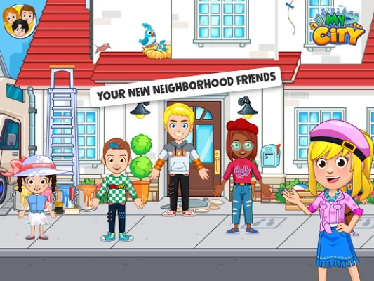 My City: My Friend's house is filled with lots of new characters, fun rooms and locations and lots of interactable accessories just ready for you to discover, explore and pretend-play with. Make sure to check out the Kids Room and Babies Room. Sit with your friends to watch a movie at the Cinema & Arcade Room or throw a wild pool party at the Garden, the options are endless! With so many fun locations to explore and so many new characters there are no limits to the stories you can play out!