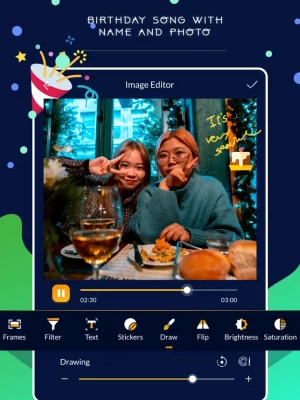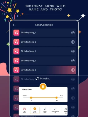 Features - High Quality video output generated - Create birthday video songs within a minutes - Easy editing and Convenient to use - Its fully free - ONE TAP SHARE on social media.