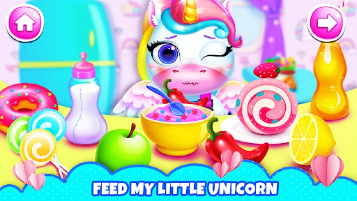 - FEED & BATH your unicorn. Your Kimi is really hungry, prepare to feed Kimi with apple, lollipop, milk and even strawberry cake. Pay attention to the reaction when you feed different foods.