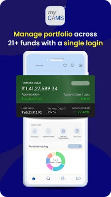 myCAMS brings a host of features - get a one view of your MF portfolio, open new folios, purchase, redeem, switch, set up SIP and more. The app facilitates faster, easier and smarter ways to transact in Mutual Funds.