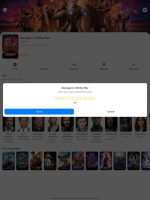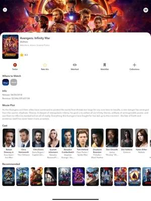 Here you can see: - Great layout and transitions! - Create your custom lists and add infinite movies to them! - See the Top Rated Movies filtered by genres! - Discover the Upcoming Movies! - Complete informations about the actors! - Get recommendations for every movie! - Quick search with instant results! - Watch trailers! - And all of these features will be synced in your account, so you don't have to worry about losing your lists or favorited movies!