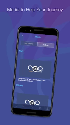 From this app you will be able to -Take a free Placement Test -Access helpful videos and PDFs -Receive learner updates, hints, and tips -Launch the neo Study App -Track your neo Live information -View your results and your progress toward meeting your goals -Follow neo on Instagram, Facebook and Twitter for more English learning tips -Find out about any neo events near you -Get help and advice on neo