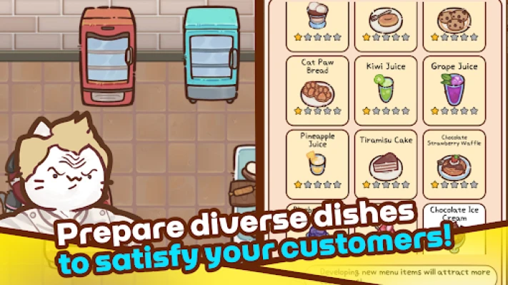 🍔 Mục tiêu của trò chơi là mở rộng từ một nhà hàng nhỏ thành một quán ăn Nhật, quán cà phê, và thậm chí xây dựng cả một Công Viên Ẩm Thực!