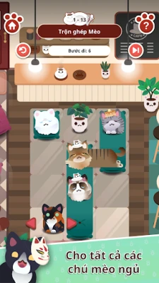 Mèo chỉ ngủ trên đệm. Hoàn tất một cấp độ bằng cách giúp tất cả các chú mèo đi vào giấc ngủ.