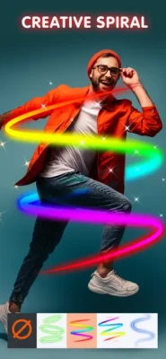 NeonArt Spiral Photo Editor is the coolest photo editing app and comes with amazing tools to make your pics art experience unforgettable.. You can easily add 3d neon spiral effects, wing effects and glitch effect to your photos. Personalize your images with text and editing options. Decorate your images with our selective stickers range.