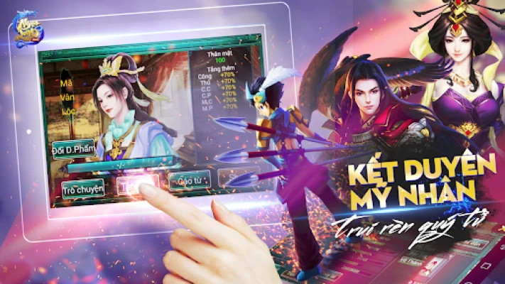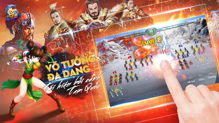 - Hệ thống Võ Tướng: Chiêu mộ, huấn luyện, trang bị, xếp trận, thưởng cho các tướng.