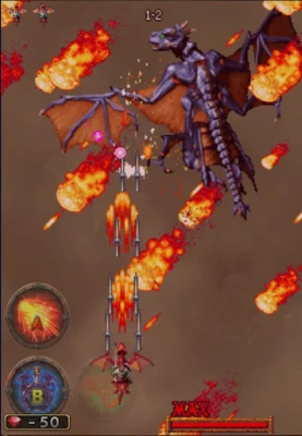 Người chơi cũng có thể sử dụng bom – những đòn tấn công phép thuật xóa sạch màn hình đầy ấn tượng, hiệu ứng thay đổi tùy thuộc vào cặp kỵ sĩ và rồng. Bom không chỉ phá hủy đạn của kẻ địch mà còn gây sát thương bùng nổ lớn lên trùm, đóng vai trò vừa tấn công vừa phòng thủ.