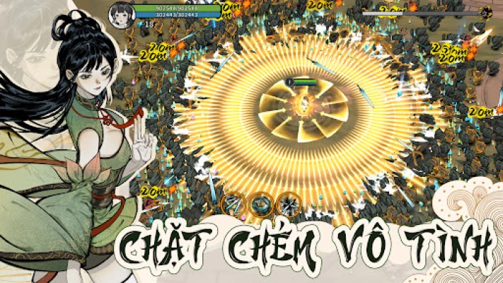 Với lối chơi Roguelike đầy kịch tính, bạn sẽ đối mặt với hàng trăm quái vật, tự do tung hoành giữa chiến trường như một vị tiên kiếm bất khả chiến bại. Kỹ năng đẹp mắt, đòn đánh mãn nhãn, mang đến trải nghiệm thị giác và tâm lý cực kỳ thỏa mãn.