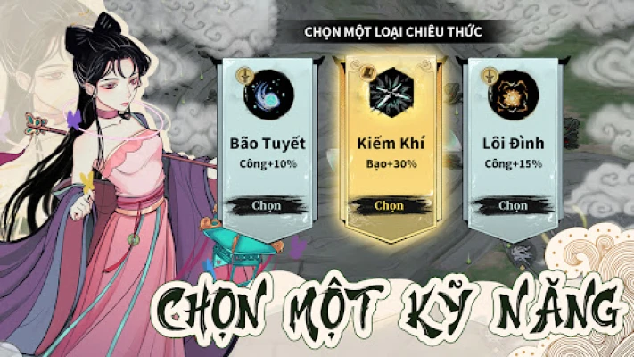 Hơn 100 kỹ năng độc đáo với nhiều biến thể, cho phép bạn tự do tạo ra những combo riêng biệt. Từ Ngự Kiếm, Lôi Phạt , đến Băng Sương, mỗi hệ phái đều có cơ chế chiến đấu độc đáo, đem lại sự đa dạng trong lối chơi.
