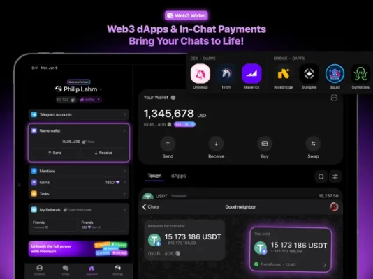 – Nicegram Wallet: Your personal multi-chain, non-custodial Web3 wallet, now supporting TON and EVM, simplifies managing digital assets with comprehensive security features. Effortlessly send and receive tokens to and from your contacts in-chat, process crypto transactions with ease, and navigate through a broad spectrum of decentralized apps.