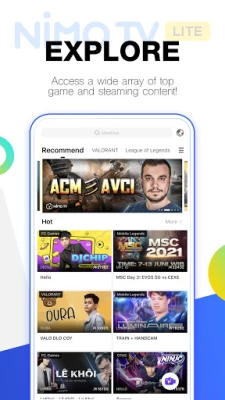 Nimo TV Lite is the small-sized version of Nimo TV. It's smaller in size but all your favorite still available.You can also enjoy a excellent video streaming experience.It is a community of players, gamers, and fans that drive conversation. Utilizing high-quality interactive technology, audiences can interact with streamers, and gain access to exclusive E-Sports events and tournaments, along with unprecedented access to the top streamers from across the region.