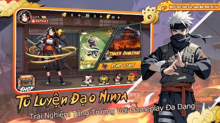 Chào mừng đến với thế giới Ninja đầy những khả năng vô hạn này, nơi màn đánh combo hành động đường phân ngang mượt mà hoa mỹ hòa quyện hoàn hảo với chiến thuật bài trang sâu sắc! Một cuộc Đại chiến Ninja mới sắp sửa bắt đầu - đây không chỉ là cuộc so tài thực lực, mà còn là sự kế thừa ý chí! Thi triển các combo bí kỹ, trải nghiệm khoái cảm đảo ngược tình thế; dùng mưu lược để bảo vệ Nhẫn Đạo mà bạn tin tưởng. Cùng nhau hợp tác chiến đấu, sức mạnh của tình bạn hữu sẽ trở thành sức mạnh to lớn nhất!