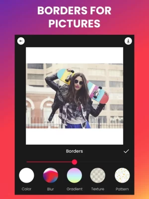 ◉ Creative Borders: Give your pic or video a border to make it stand out. You can keep it simple with a square, or experiment with heart, circle, many pointed stars and more. Your friends will be amazed!