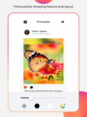 NoCrop : Square Photo Editor is the simplest no crop photo editor for Instagram. You can create insta-sized square pictures using built in no crop function if you love insta square picture style. No more frustration when you have to crop your great full size photos before posting them on social networks