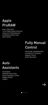 * Auto Assistants: NOMO RAW has all the visual assitants to help you taking better pictures -- Histogram, Horizon Indicators, Focus Peaking & Zoom, Zebra Stripes, Thirds, etc.