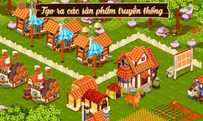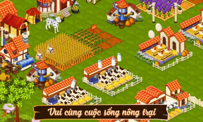 Game nông trại, trang trại hay. Bạn hãy xây dựng riêng cho mình một nông trại,làm vườn, trồng cây, nuôi các con vật như gà, lợn, bò, cừu .... Xây dựng các nhà máy, sản xuất tạo nhiều loại sản phẩm và bán hàng theo hóa đơn