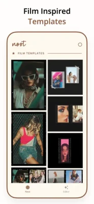 The app also has wide range of film inspired templates. Whether you're looking to create a captivating story, a stunning collage, or a breathtaking mood board, we've got you covered. From the timeless black and white era to the warm nostalgic tones of vintage film, we've carefully crafted a collection of templates that will transport your photos back in time.