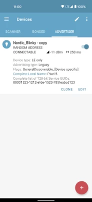 nRF Connect for Mobile is a powerful generic tool that allows you to scan, advertise and explore your Bluetooth Low Energy (BLE) devices and communicate with them. nRF Connect supports number of Bluetooth SIG adopted profiles together with Device Firmware Update profile (DFU) from Nordic Semiconductors and Mcu Manager on Zephyr and Mynewt.