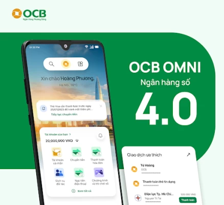 Ngân hàng số thế hệ mới OCB OMNI 4.0 của Ngân hàng TMCP Phương Đông (OCB) với đa dạng sản phẩm dịch vụ tài chính và tiện ích được tối ưu theo hướng đơn giản nhưng hiện đại, hiệu quả và cá nhân hóa trải nghiệm cho từng khách hàng... đảm bảo giao dịch nhanh chóng 24/7, an toàn, bảo mật và tiện lợi.