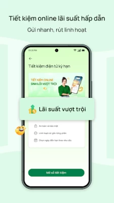 - Mở tiết kiệm nhanh, rút một phần hoặc toàn bộ online 100%