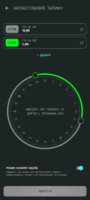 • Керування тарифами. Встановлюйте та змінюйте тарифи на електроенергію. Динамічні налаштування дозволяють враховувати денний/нічний періоди, економлячи кошти та оптимізуючи витрати.