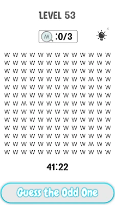 Do you like spot the difference games? If yes then this fun game is for you Find the difference spot odd one is an exciting new find the difference game where you look at letters and try to spot the one that doesn't belong. A simple difference finding game to play, but an impossible brain puzzle to master..