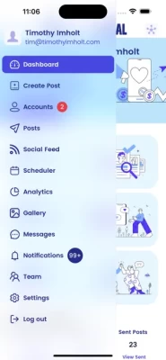 All of your Social Media Accounts and efforts, with a quick snapshot of your recent and upcoming posts and overall analytics of your Social Media presence performance.