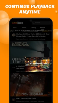 - Enjoy unlimited music and video streaming with OneTube's ad-free popup player. - Experience smooth playback, background listening, and audio mixing for seamless multitasking. - Popup player: Keep watching while you browse the web or use other apps. - Create personalized playlists and manage your viewing history. - The app features automatic playlist saving, enabling users to resume playback at any point. - By default, the app uses audio mixing to play music simultaneously with other app sounds. You can disable this feature in the player settings.