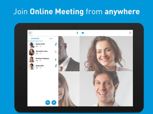 The free Online Meeting Webinar mobile app makes it easy for users to attend and actively participate in webinars on-the-go. Available for Online Meeting webinar attendees only.