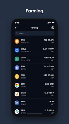 ONUS mang tới các sản phẩm thu nhập thụ động với các sản phẩm tiết kiệm có kì hạn (farming) lên tới 24.09%, tiết kiệm không kì hạn (staking) với lãi kép 12.8%. Nhận lãi hàng ngày.
