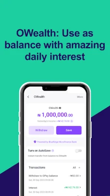 ● OWealth: Earn daily interest, with free deposits and withdrawals anytime.