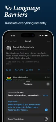 ⁃ Translate posts instantly