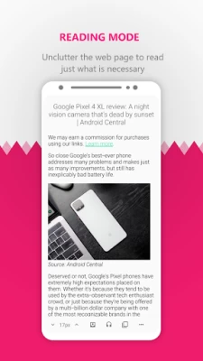 Remove distractions and unwanted content from articles on the Internet pages for a better reading experience with voice synthesizer and options to save the offline page for later reading.