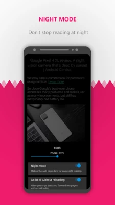 Helps you get the best browsing experience at night or in a low-light environment, darkening the web pages to be easily readable.