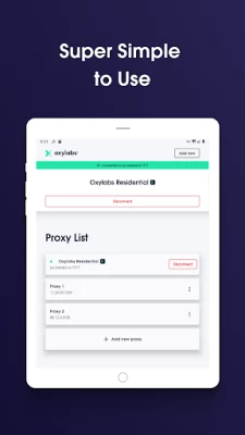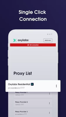 Oxy Proxy Manager is a free proxy app that allows you to add, edit and manage proxies from any proxy provider. With a simple one-click connection, you can switch between different proxies to manage multiple social media accounts or access websites that would otherwise be blocked.