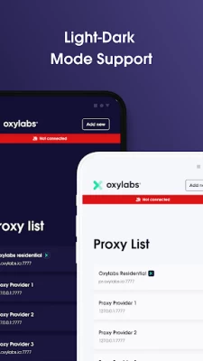 Set the right mood with your preferred color - our proxy app also supports Light-Dark mode!