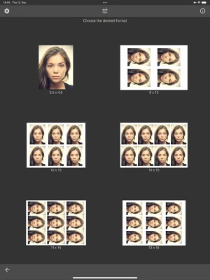 This app can store, print, share or email multiple passport photos on photo paper. The resulting images can be printed directly, or ordered later (not from the app) from the photo lab of your choice on the Internet.